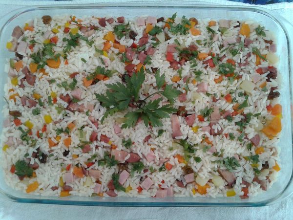 - 3 xícaras de arroz branco cozido normalmente