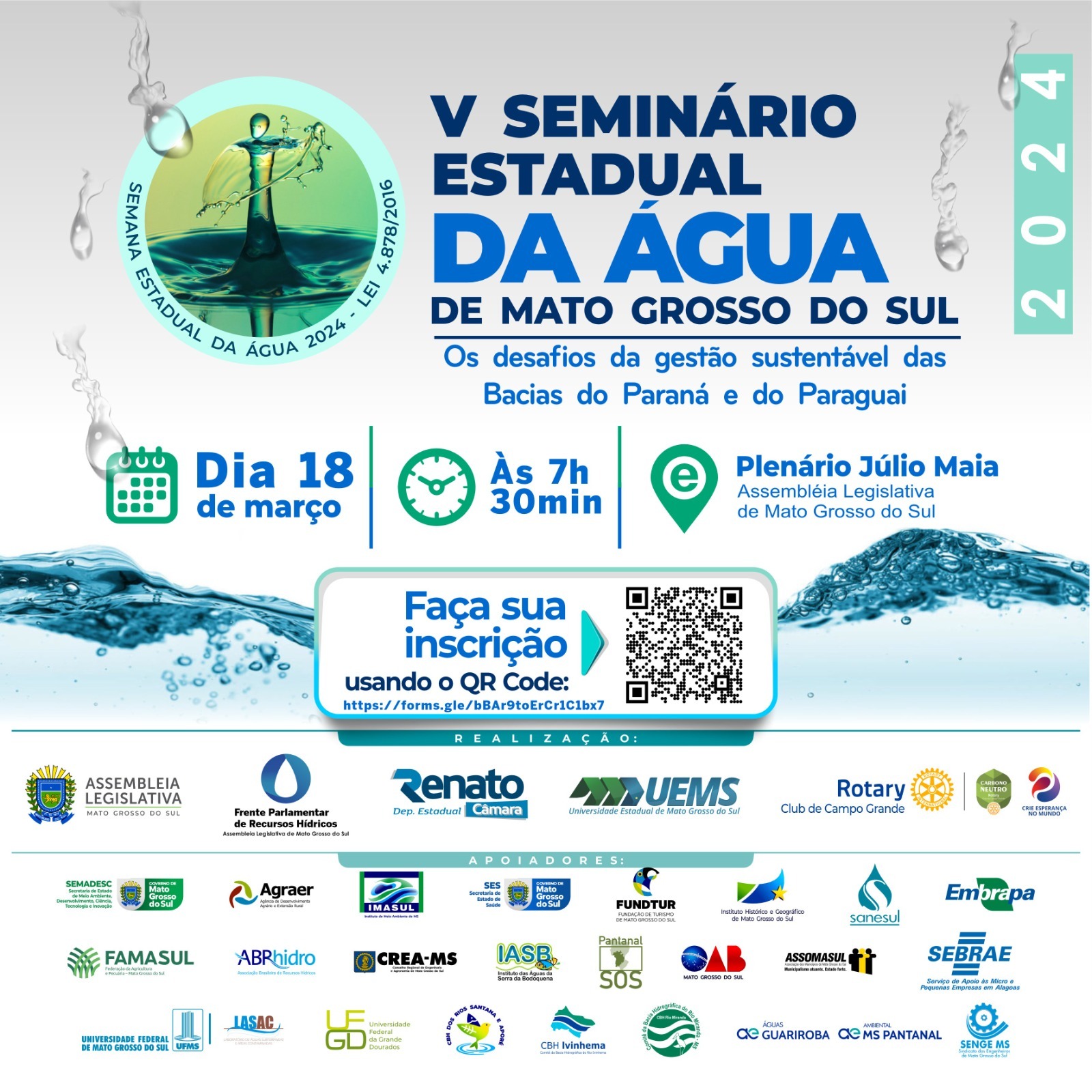Semadesc (Secretaria de Meio Ambiente, Desenvolvimento, Ciência, Tecnologia e Inovação) e Agraer (Agência de Desenvolvimento Agrário e Extensão Rural), participa do V Seminário Estadual da Água na segunda-feira (18), das 7h30 às 17h, no Plenário Júlio Maia, nas dependências da Assembleia Legislativa de Mato Grosso do Sul, situada no Parque dos Poderes, em Campo […]