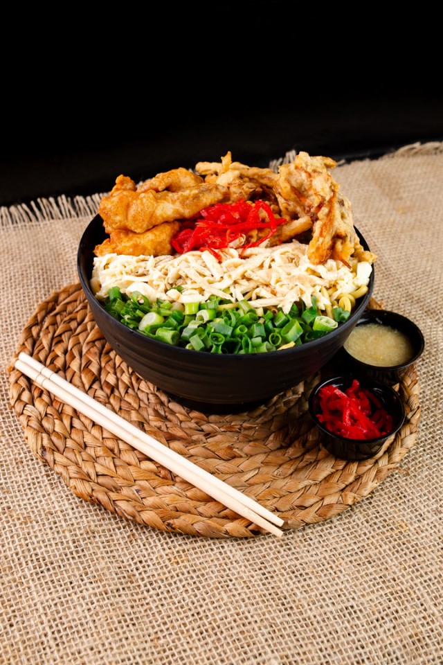 Macarrão de Sobá caseiro, fios de ovos, tirinhas de filé de Pintado, Cebolinha, Tempurá e caldo especial à moda da casa. JADI SOBÁ Avenida Dos Ferroviários, 0Feira Central. Centro. Campo Grande-MS Telefone: 67 99232 5848 @JADISOBA