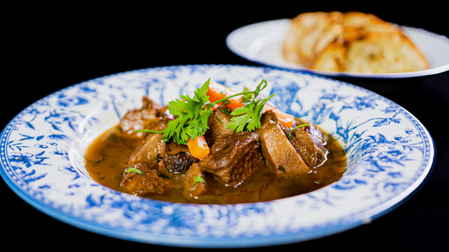 Língua bovina com molho roti, acompanha pão. CENTRALLE OSTERIA Rua Padre João Crippa, 1105. Centro. Campo Grande-MS Telefone: 18981199589 @CENTRALLEOSTERIACG