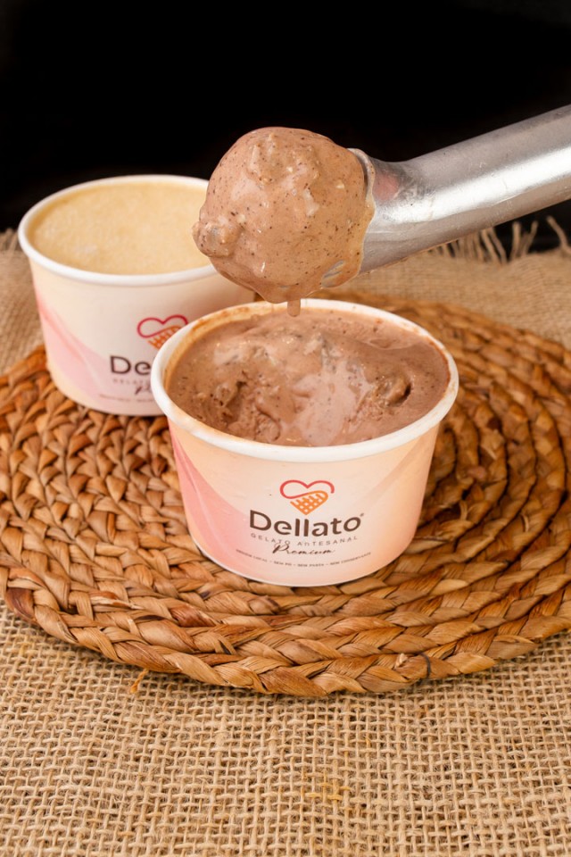 Gelato artesanal de chocolate (cacau 100% orgânico) com brigadeiro de Baru, que é feito com a castanha do Baru, extraida na região de Miranda-MS e Gelato com polpa de Guavira. GELATO ARTESANAL Rua Getulio Costa Lima , 356. Tiradentes. Campo Grande-MS Telefone: 67 99296 0724 @DELLATOBRASIL