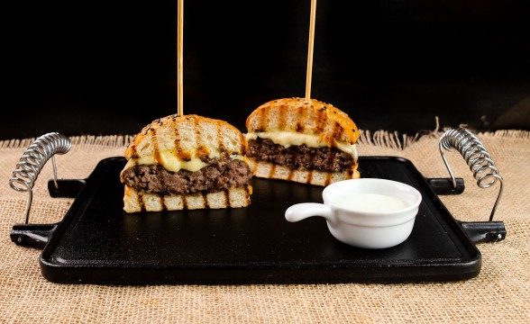 Burger de blends de carne 180gr, queijo Nicola, pão artesanal e molho especial. QUINTAL 280 Rua General Odorico Quadros, 280. Jardim Dos Estados. Campo Grande- Telefone: 67 99611 2642 @QUINTALDOISOITOZERO