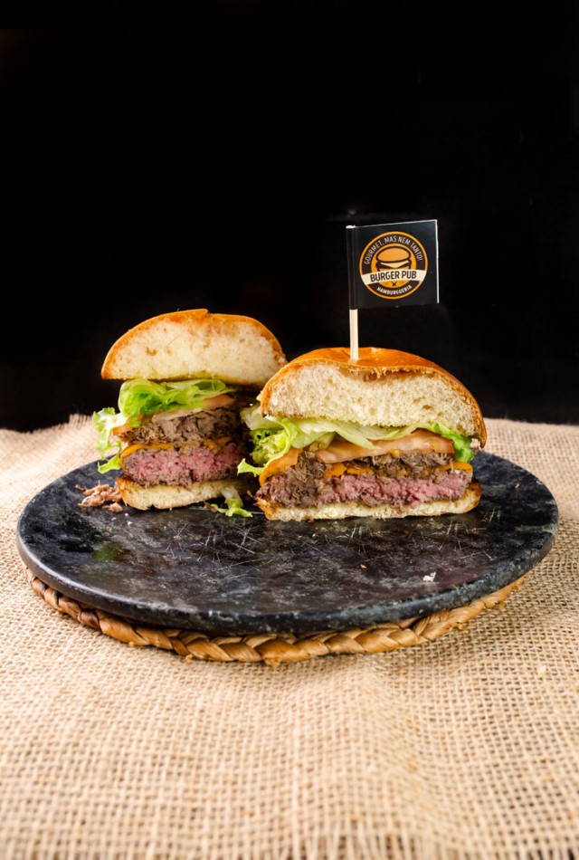 Pão Brioche, burger angus grelhado, queijo cheddar scar, costela desfiada, alface americana e tomate. BURGER PUB Barão Do Rio Branco, 280. Centro. Campo Grande-MS Telefone: 67 99292 1844 @BURGERPUBCG