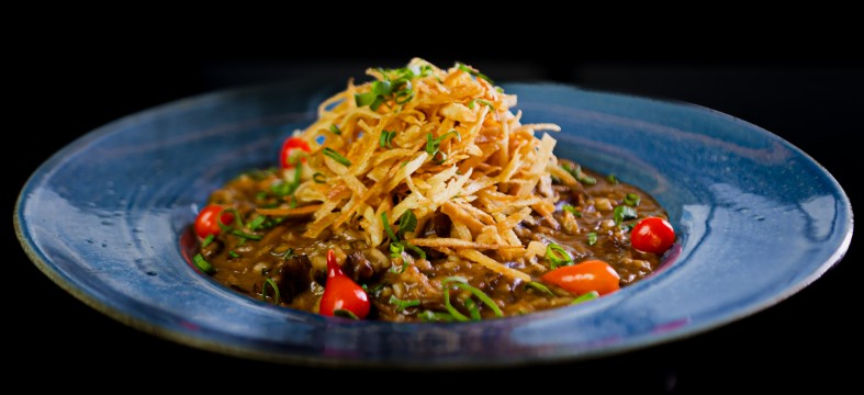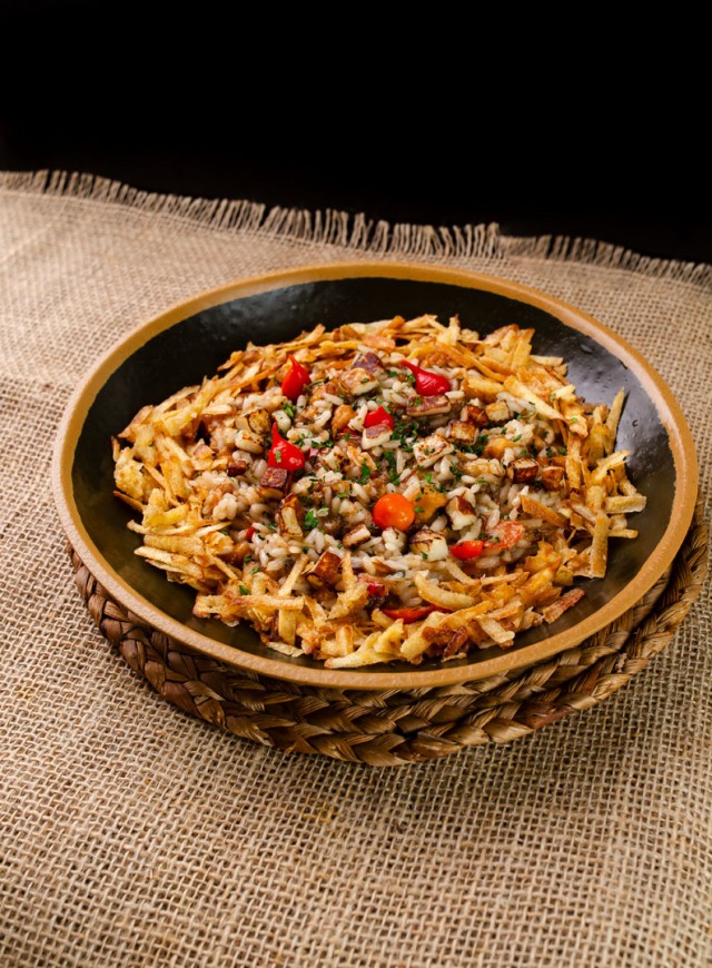 O original – arroz arbóreo o italiano, servido com carne seca artesanal desfiada, banana da terra flambada, cebolinha, coberto com crocante de mandioca, finalizado com pimenta biquinho. TERRITÓRIO DO VINHO Rua Euclides Da Cunha, 485. Centro. Campo Grande-MS Telefone: 67 98152 0004 @TERRITORIODOVINHO