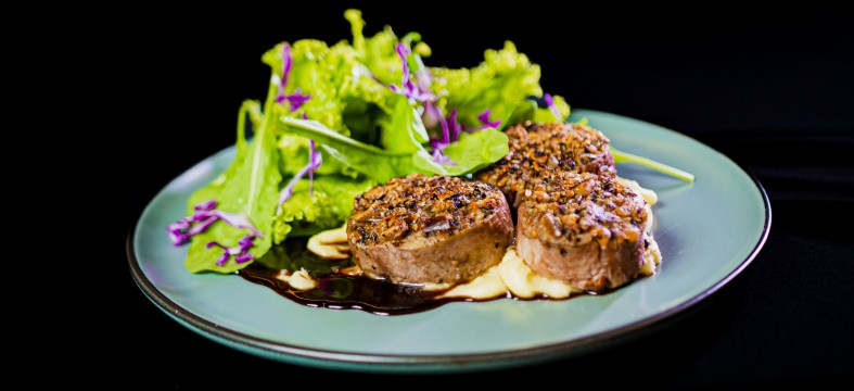 Com crosta de castanha de baru e redução vinho tinto com rapadura de furnas – acompanhado de purê de mandioca rústica com queijo nicola. GREEN & STEAK Rua Paraiba, 574Dentro Do Jardim Central. Jardim Dos Estados. Campo Grande-MS Telefone: (67) 98415-3889 @GREENSTEAKBR