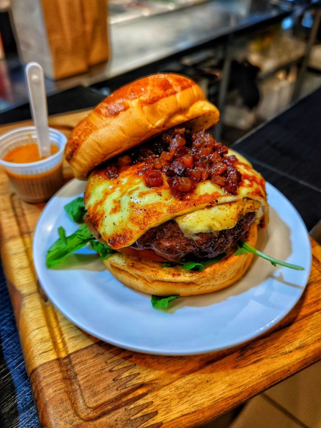 Pão de brioche, maionese especial, burger de 180g assado na churrasqueira, mussarela, queijo caipira do mercadão, bacon caramelizado, rúcula e tomate. NABRASA BURGER Av Salgado Filho , 4386. Centro. Campo Grande-MS Telefone: 67 98120 9500 @NABRASABURGERCG