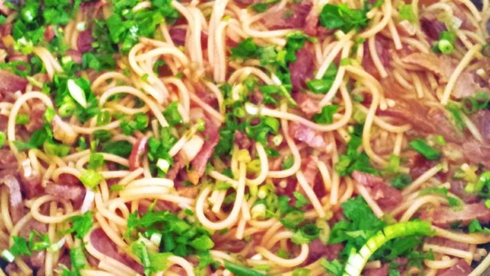 4. Coloque o macarrão, dê uma refogada e adicione água fervendo até cobrir o macarrão, se precisar de uma reforçada no tempero.