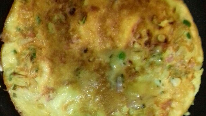 - Em uma frigideira refogue a cebola, o presunto, adicione a mistura dos ovos batidos, adicione cebolinha e pimenta a gosto, espere aquecer dos 2 lados e pronto.