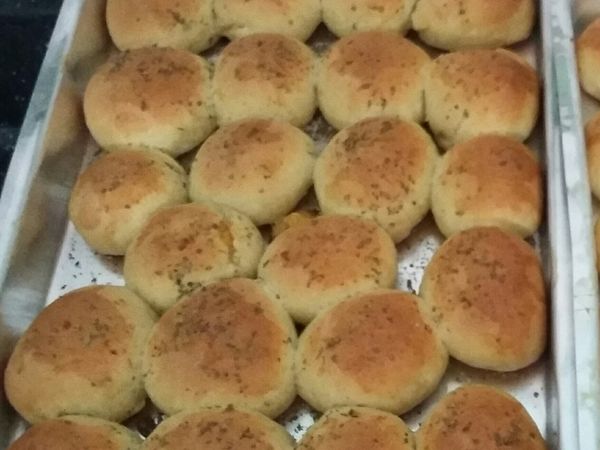 - Depois da massa descansada, retire pedacinhos e abra a mão, recheie, feche modelando as bolinhas, coloque em uma assadeira polvilhada com trigo e deixe descansar por mais 30 minutos