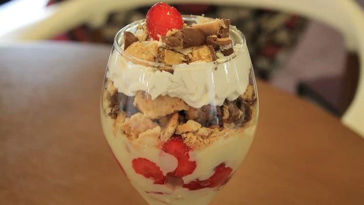 PAVÊ DE MORANGO COM SONHO DE VALSA